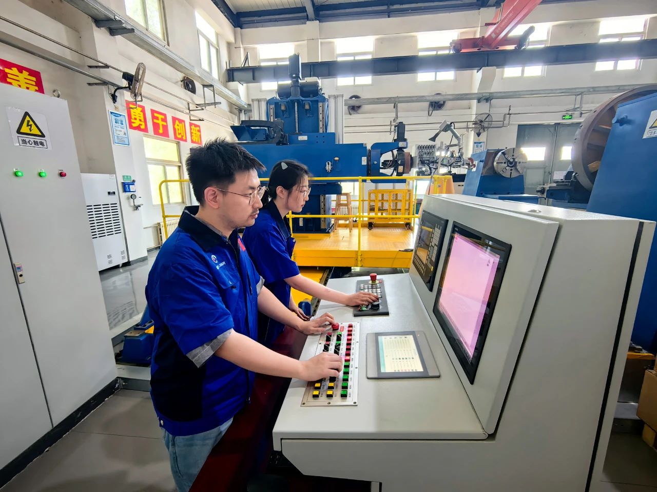 “小金豬”也的確不讓人省心。有一次,材料還在高溫成型過程中,用來給設(shè)備做冷卻的水箱突然不上水了。溫度如果降不下來,別說是“小金豬”,養(yǎng)豬的家伙什兒都得一起沒了!聽到報(bào)警,芳姐趕緊啟動(dòng)應(yīng)急措施,招呼大家伙兒人工降溫,確保安全。“我們當(dāng)時(shí)七八個(gè)人,一起給冷卻水箱人工注水,用了將近一個(gè)小時(shí),溫度總算是控制住了。”