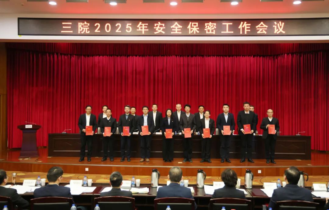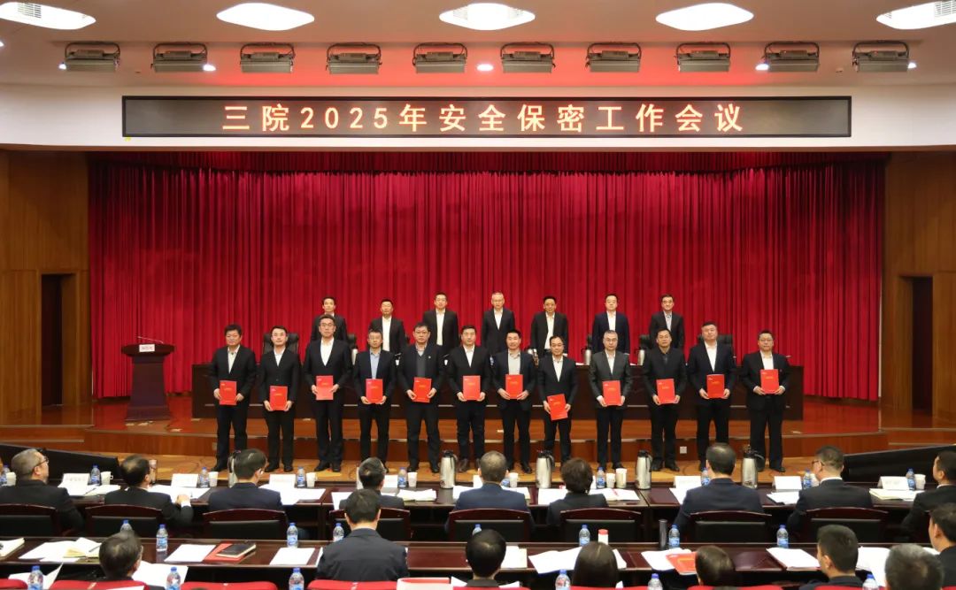 會(huì)議作了題為《強(qiáng)化問題導(dǎo)向 提升治理能力 以高水平安全促進(jìn)高質(zhì)量發(fā)展》的安全保密工作報(bào)告,宣讀了三院2024年度安全生產(chǎn)、保密、保衛(wèi)工作先進(jìn)表彰的決定,通報(bào)了三院2024年《安全保密責(zé)任書》考核完成情況,并作2025年《安全保密責(zé)任書》說明。院領(lǐng)導(dǎo)向三級(jí)單位黨政主要負(fù)責(zé)人頒發(fā)了2025年《安全保密責(zé)任書》。