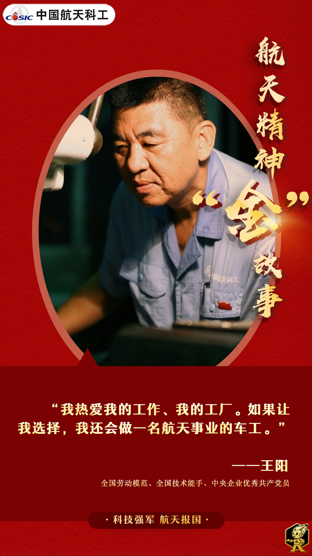 對(duì)事業(yè)熱愛篤定,對(duì)專業(yè)執(zhí)著堅(jiān)持,三尺車臺(tái),王陽一站就是40年。他用“零失誤”的操作創(chuàng)造了連續(xù)28年無廢品紀(jì)錄,他用100%的產(chǎn)品合格率保障了載人航天等重大工程任務(wù)的成功。因?yàn)檫@股倔勁韌勁,王陽把“鐵疙瘩”車成了航天精品,也把自己“車”成了國(guó)之棟梁。