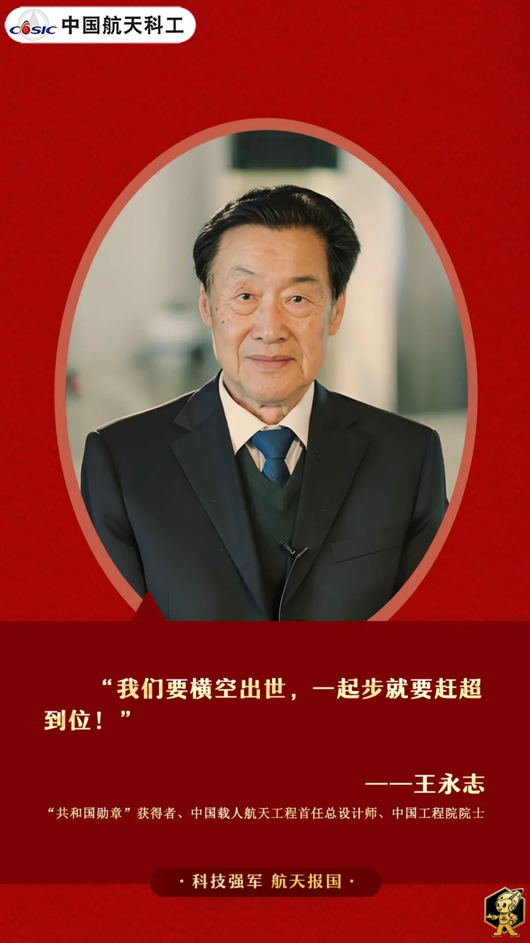 王永志院士生前曾說,他一生干了三件值得欣慰的事:研制導彈、送衛星上天、送中國人進入太空并籌建中國空間站。這三件事他干了一輩子,為國防現代化建設和載人航天事業作出杰出貢獻。今年9月,他被授予“共和國勛章”。